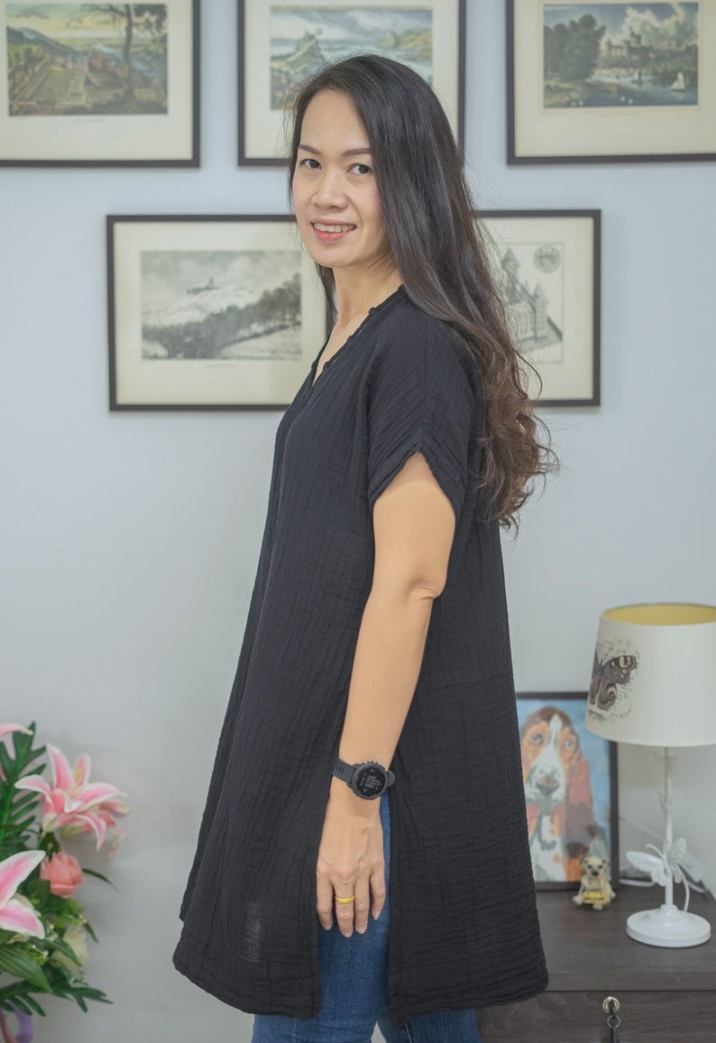 Comfortable and relaxed fit with side slits and looks good on any shape.