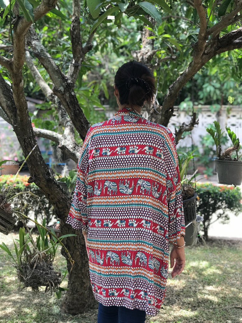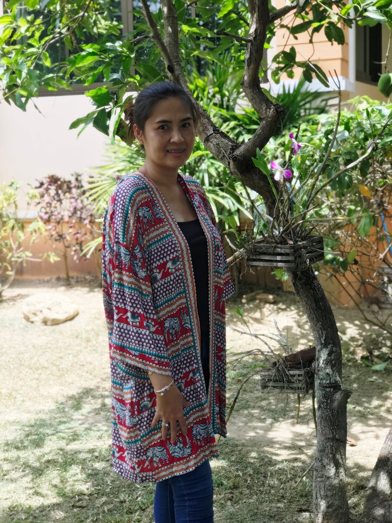 Ready to ship in black/red floral, blue diamond, red elephant and brushed multi-color.