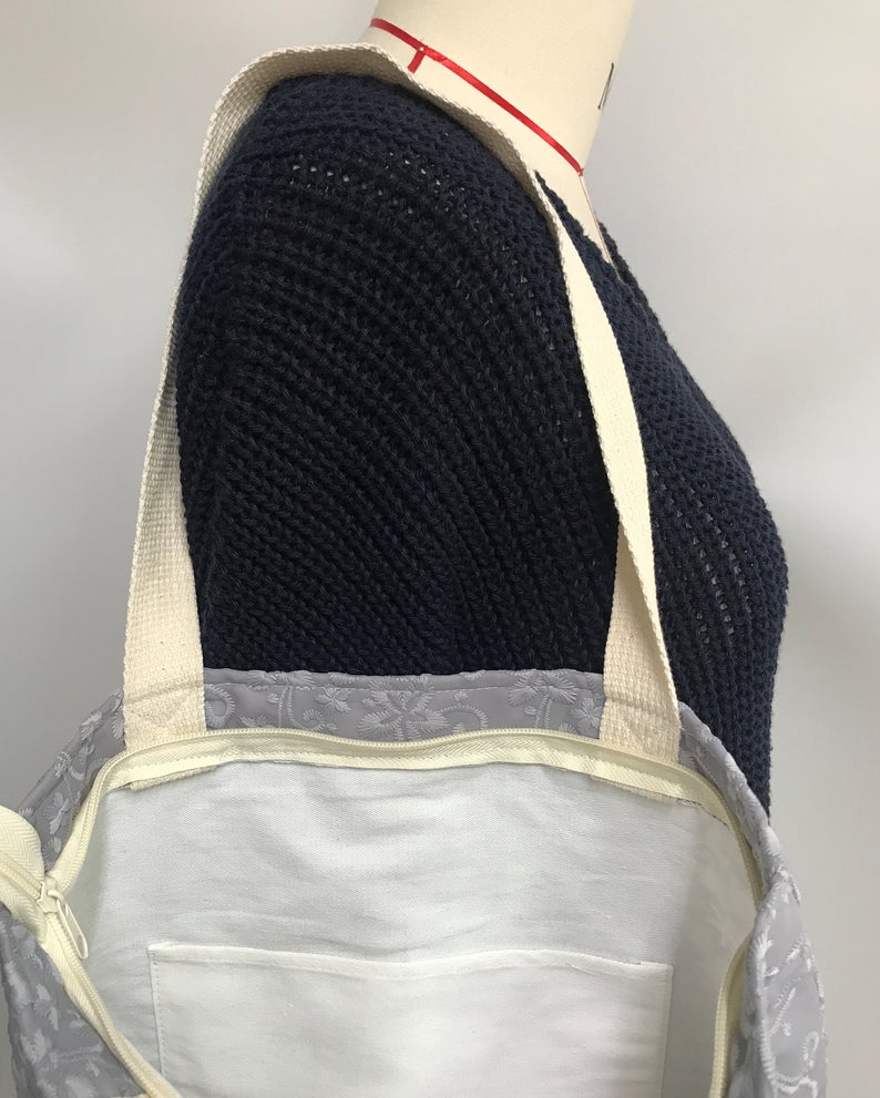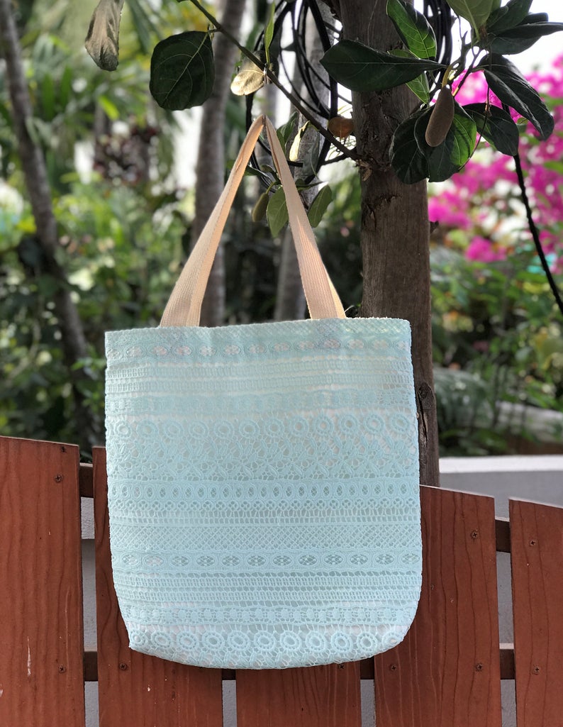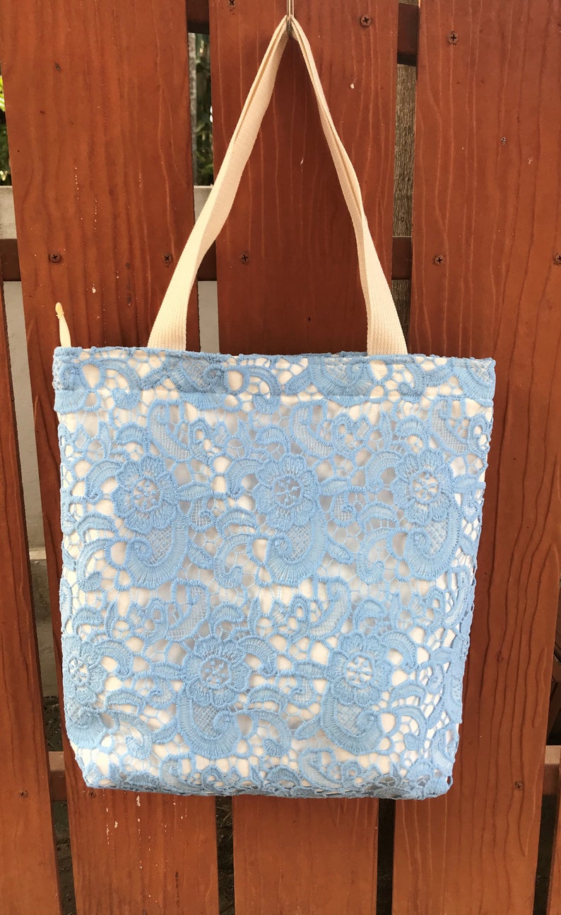 This lace tote bag is with zipper, your belongings can stay securely. It can be used for anything you want; as lunch bag, picnic bag, sundry bag or shopping bag.